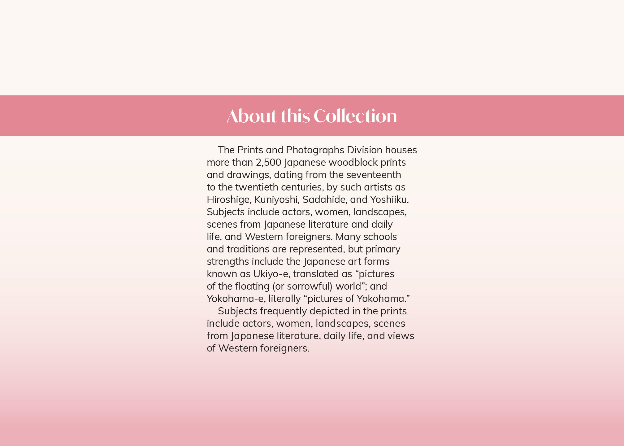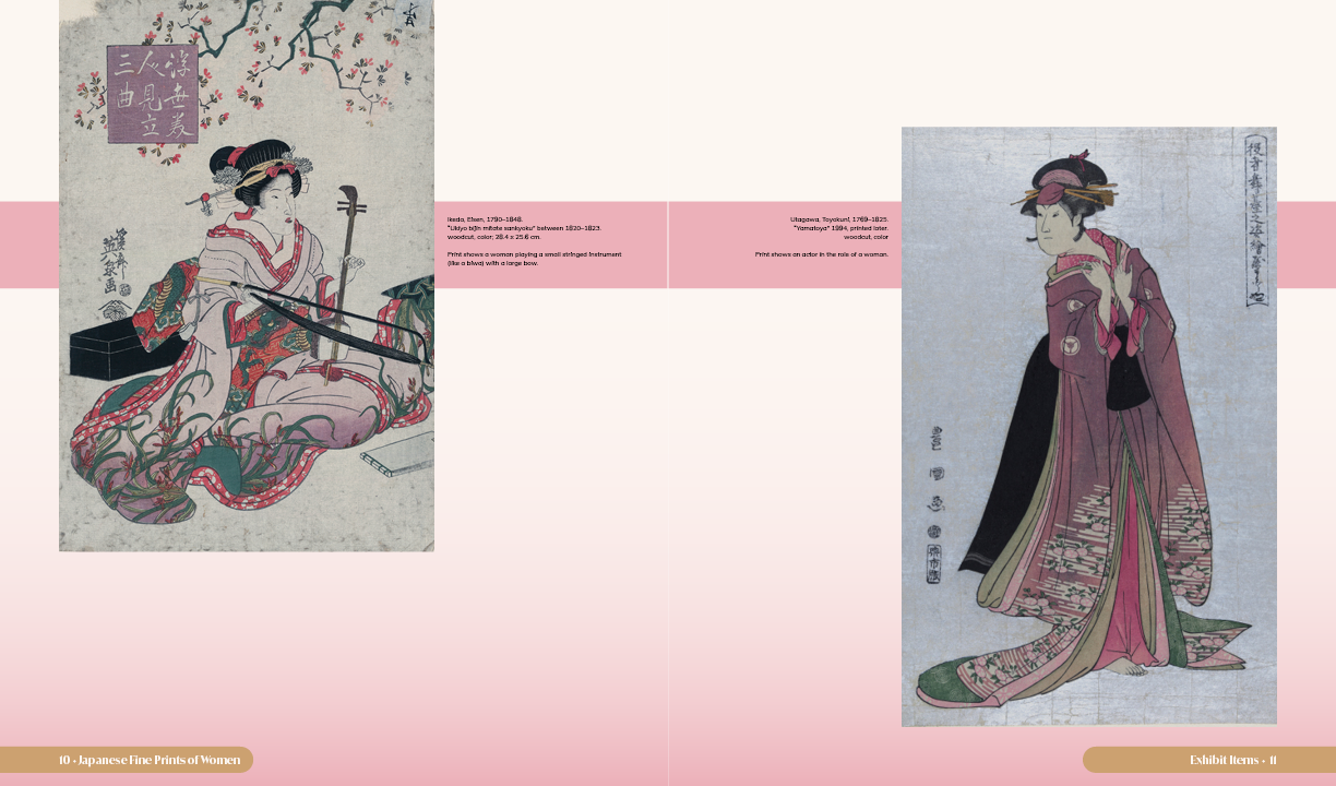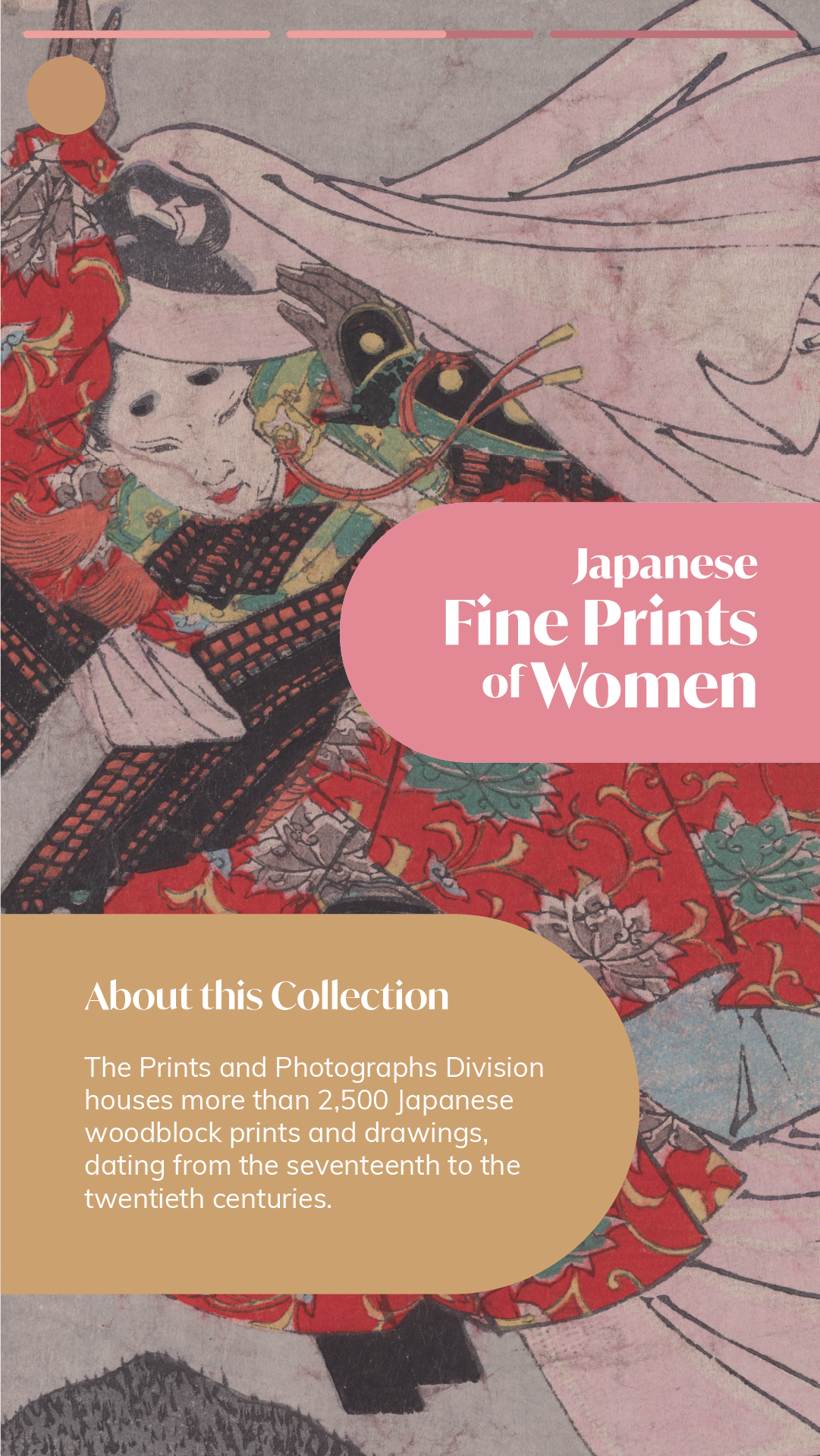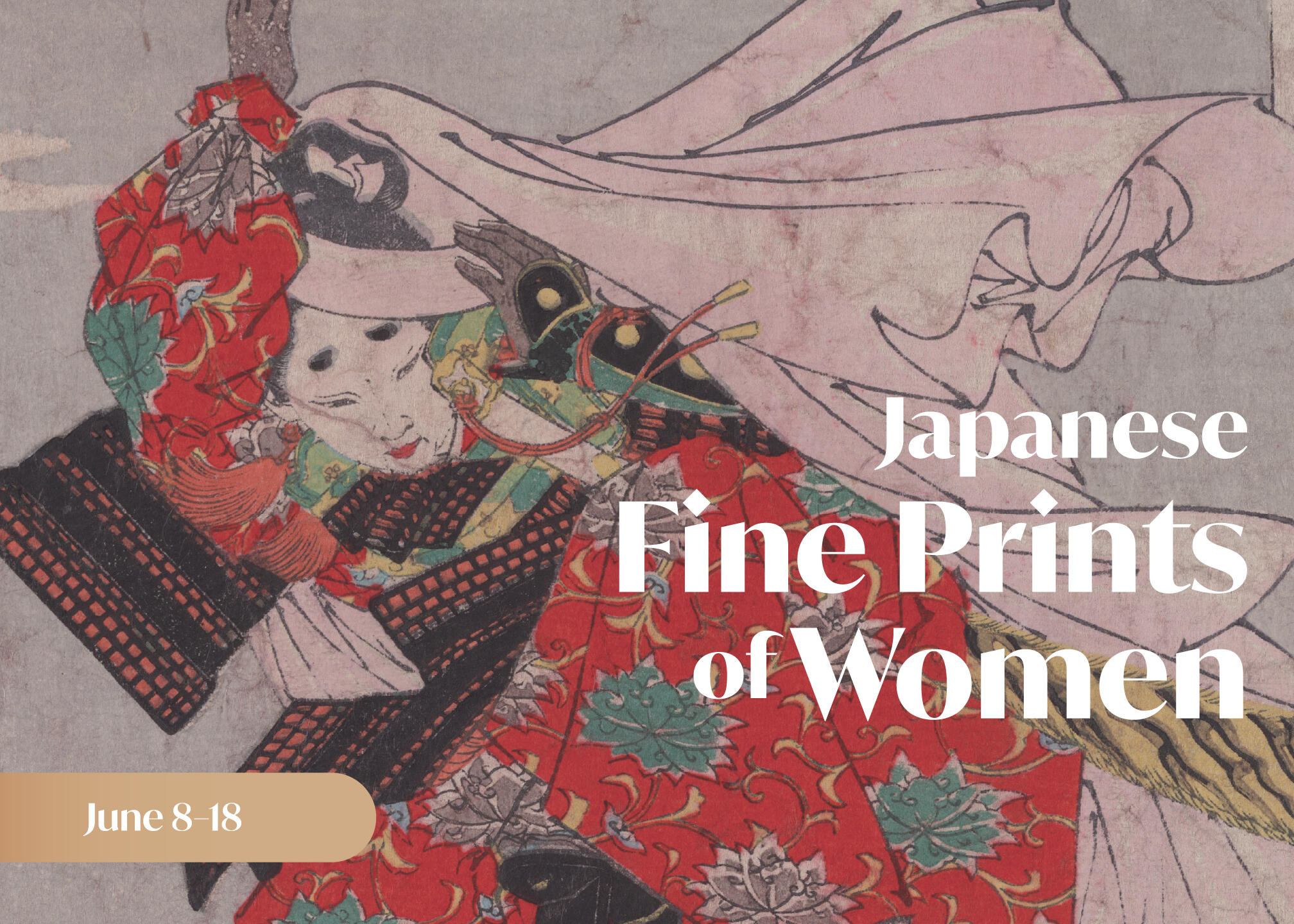Booklet, postcard, and social media story collateral for a ficticious art exhibit displaying fine prints from Japan, pre-1900s.